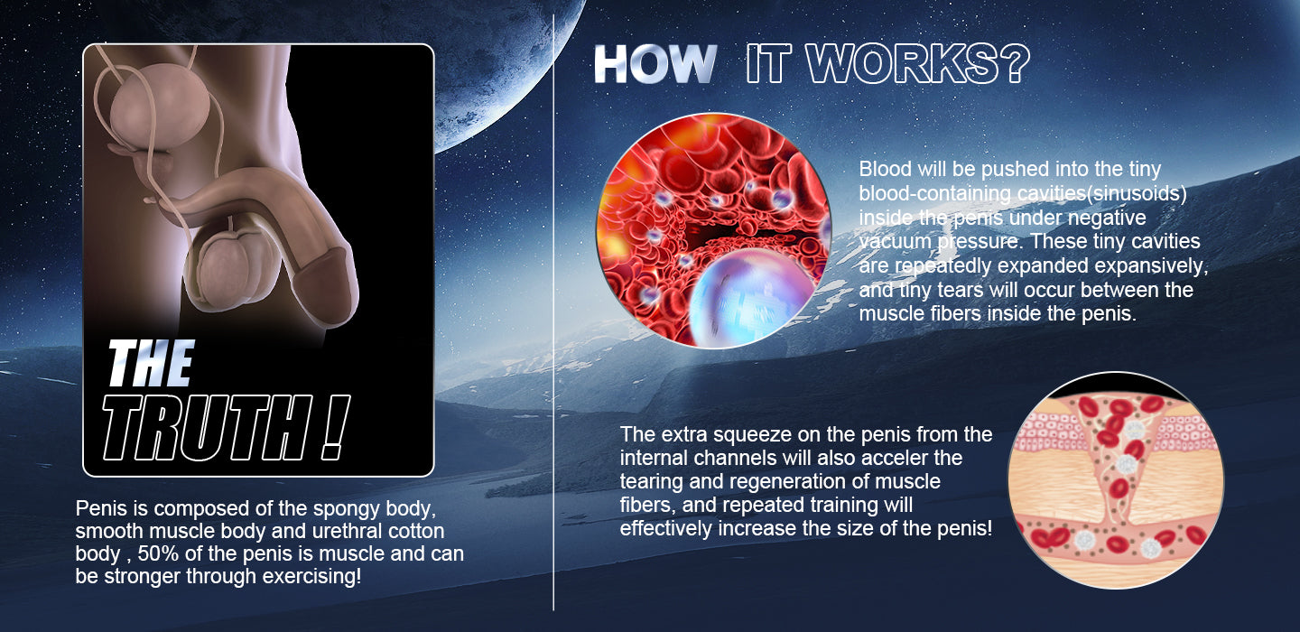 Scientific Strengthening – About half of the penis is made up of muscle, which can be strengthened through exercise. During vacuum therapy, the expansion of the sinuses causes tears in the muscle fibers, which can ultimately increase the strength and size of the penis.