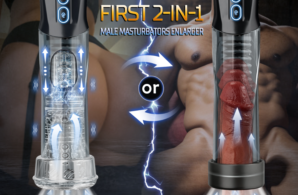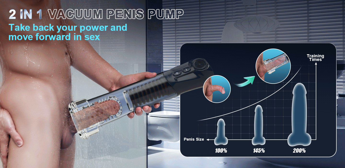 2 in 1 Penis Pump - This penis pump is all you need to get realistic vaginal sensations, gradually enlarge your penis and erection, extend the duration of your erection, improve sexual sensations and increase your confidence during future sex.