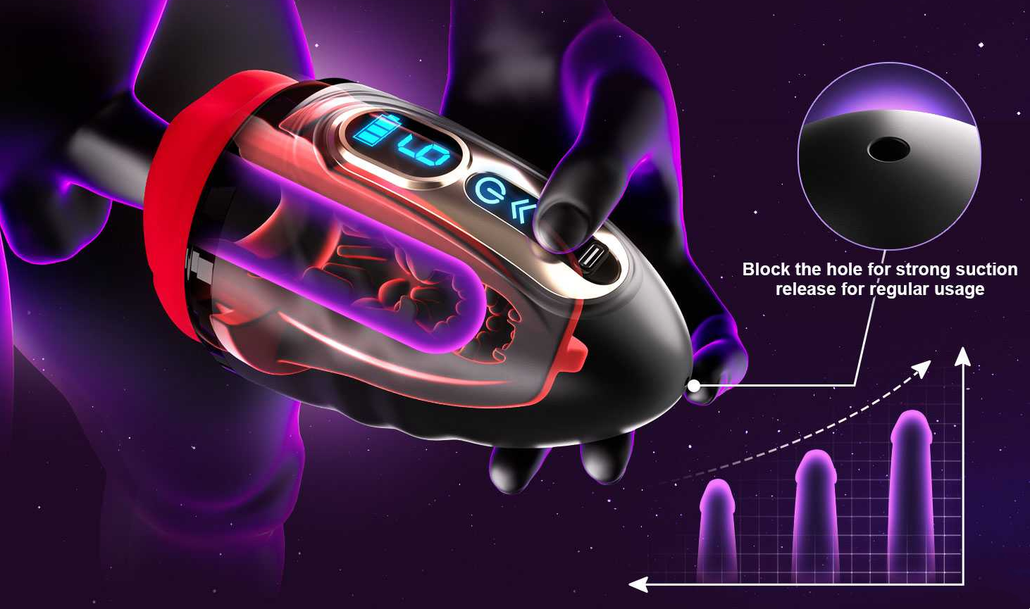 🚀LCD Screen - Easy to Operate-This male sex toy is equipped with an LCD screen that clearly and intuitively displays the battery level and vibration intensity to track the pleasure journey. Easy to operate, you can directly adjust the vibration through the up and down buttons, and easily reach the maximum vibration intensity with one click, so as to achieve the storm faster.
