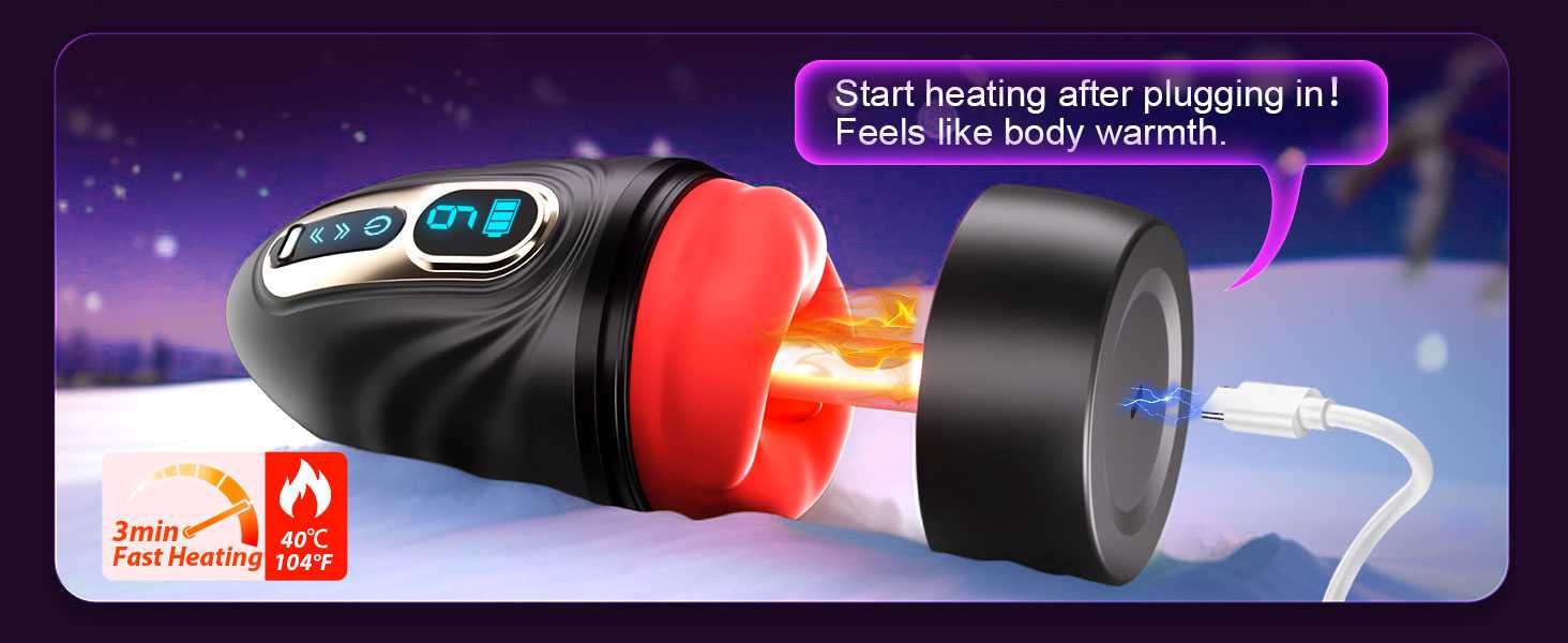 🚀3-minute quick warm-up sleeve-The heating rod quickly heats the sleeve to 40°C/104°F, close to human body temperature, in just 3 minutes via the USB-C charging cable. Enjoy unforgettable moments and feel the exciting warmth enveloping your senses.