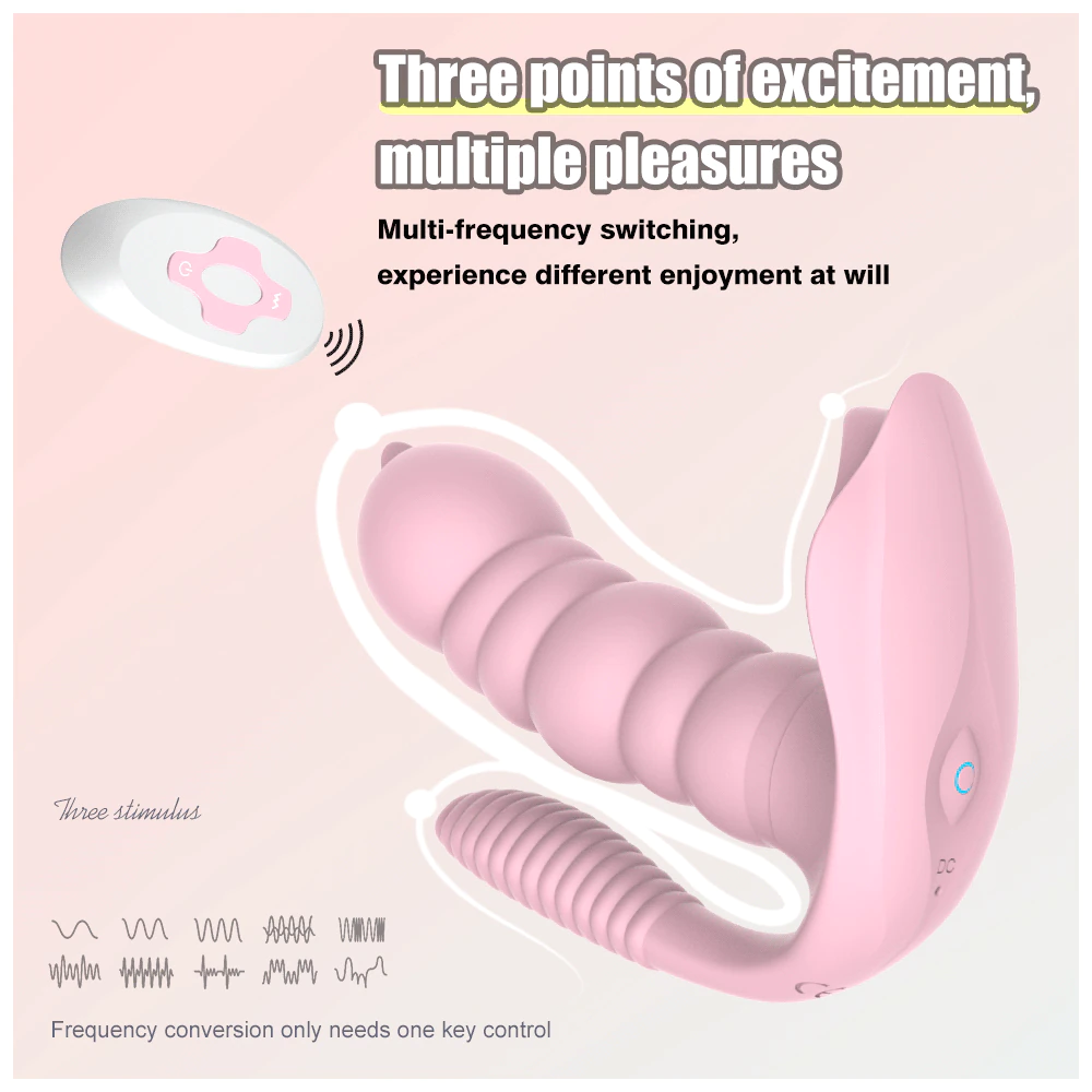 This is a wearable vibrator that stimulates both the vagina and anus at the same time.