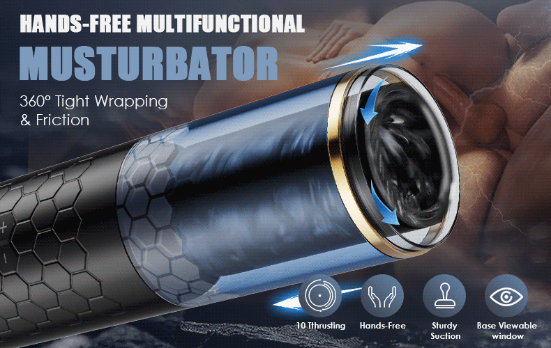 A hands-free automatic masturbator for those who are tired of jerking off with their hands and seek more accessories for solo play. When you open the masturbation cup, the automatic thrusting action and rich pellets lick your cock like crazy, stimulating every sensitive spot, and the gentle inner vaginal texture will make you feel like you're in a real pussy. The firm suction base allows you to place this penis massager on any smooth and hard surface, unlocking more locations like sticking this penis massager to a bedroom or bathroom wall. This is a realistic way to use penetrative sex. The hexagonal texture is non-slip and easy to grip to prevent falls.