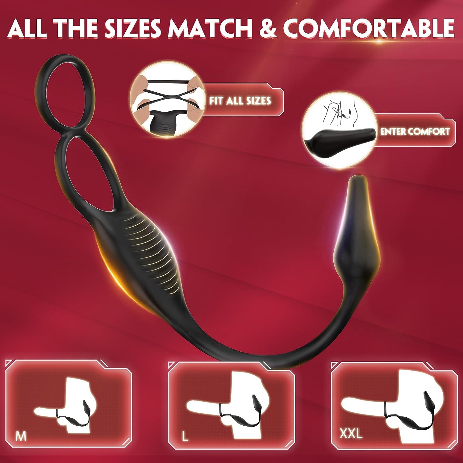 3.【Stretchy Silicone & Whisper Quiet】Unlike other sex toys on the market which are hard and uncomfortable. Our anal vibrator has been updated to provide a ultra-soft and stretchy texture, the dual penis rings can fit most girths and are soft enough to comfortably hold tight even for extra-large male size. The anal trainer plug with smooth tapered tip for easy insertion and comfortable wear. Our anal dildo toy achieve quiet ≤40dB, enjoy the outside fun without worrying about being overheard.