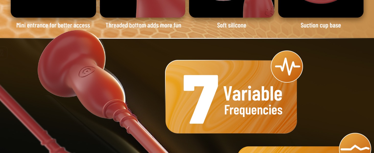 2. Tapered Top, Threaded Bottom This urethral penis vibrator's gradually tapered tip ensures smooth, controlled penetration—reducing discomfort for beginners while allowing advanced users to explore deeper stimulation at their own pace.The threaded base design adds subtle external texture that can heighten stimulation during use.The reinforced suction cup provides strong adhesion to any flat surface (tiles, shower walls), enabling stable, hands-free exploration or couple’s play.