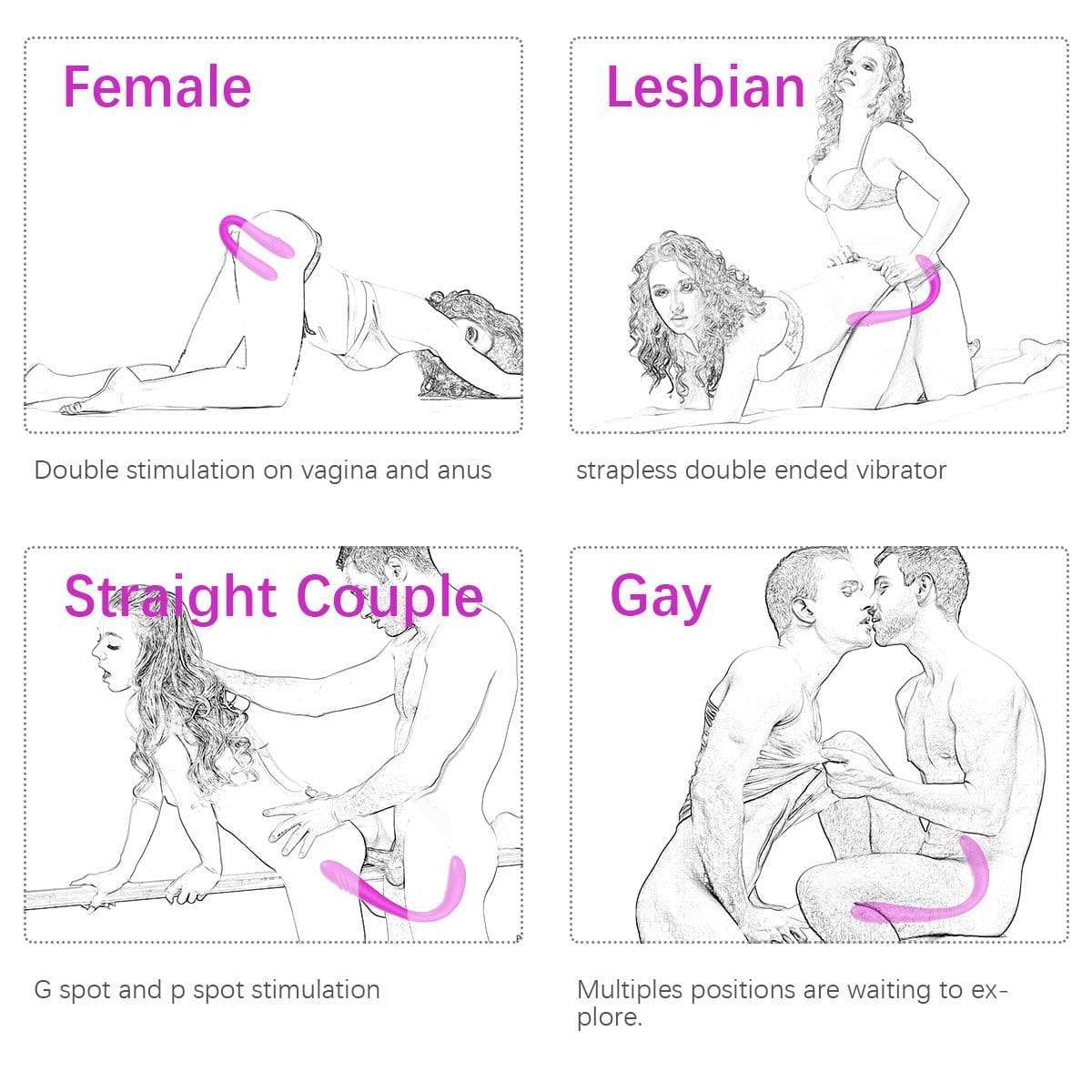 Dual Heads Design - With two insertable ends, this double ended dildo is a perfect gift for lesbians, bisexuals, and straight women who enjoy the stimulation both on the clitoris and the back door. It's able to provide intense vagina and anal stimulation at the same time, 100% suitable for solo and partnered play.