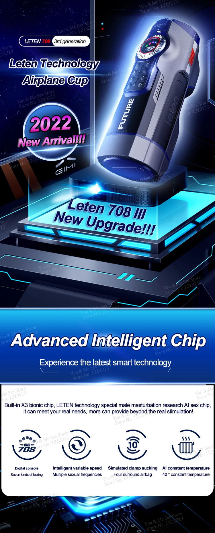 Newest Leten 708-III Automatic Piston Telescopic Vagina Male Masturbator Vibrator Heating Sucking blowjob Moaning Oral Sex Toys