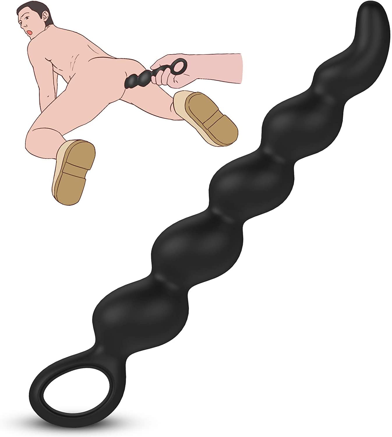 Unique Shape - Differs from general gay anal beads composed by many round balls, this anal ball from Sohimi is specially designed in the composition of 5 different-sized drop-shaped beads and a handle loop in the bottom, and the tip of it is perfectly curved to touch the P point.