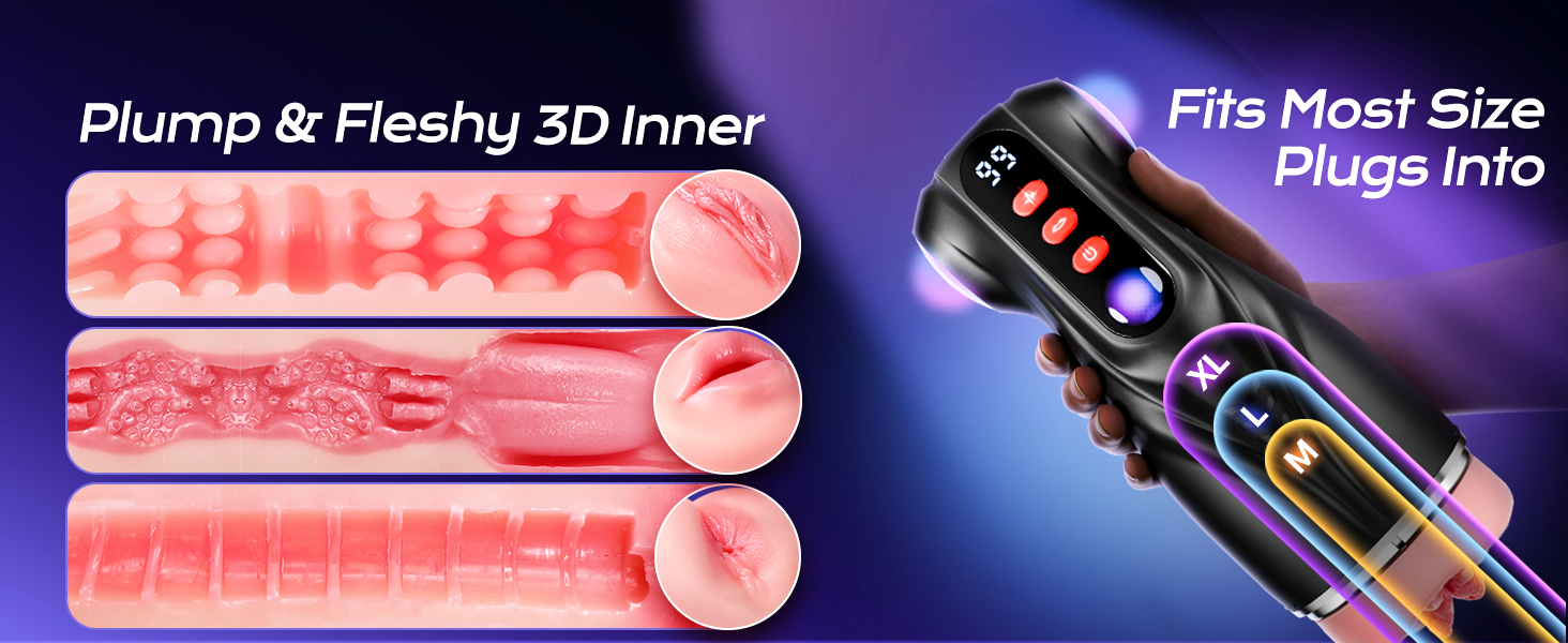 Male Sex Toy with 3 Replaceable Sleeves Sets: Sexoralab adult toys allow you to experience triple the pleasure with three interchangeable textured sleeves. Sex toys for men designed with different texture particles to mimic sensations—mouth, vagina, and anal. Each sleeve is crafted from body-safe, skin-like material for a satisfying encounter every time.