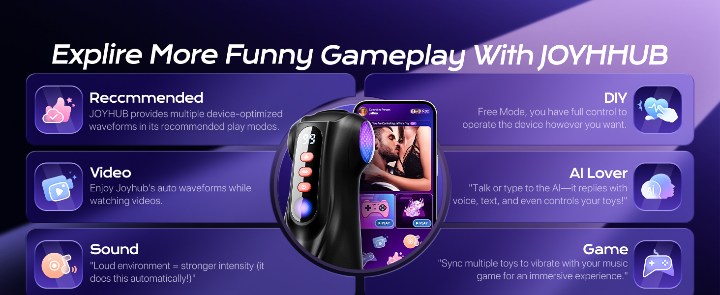 Intelligent AI Lover APP Control Technology Mens Sex Toys: APP unlock an AI Lover mode, offer a deeper connection through real-time voice/text chat, the rhythm changes. Male sex toys can be connected to the Joyhub app, you can choose recommendation mode, DIY mode, video mode and sound mode. Control vibration and suction settings remotely or let your partner take the wheel, whether they’re near or far, "add friends" to experience the fun of remote interaction. Explore a whole new world with our adult toy pocket pussy right now.